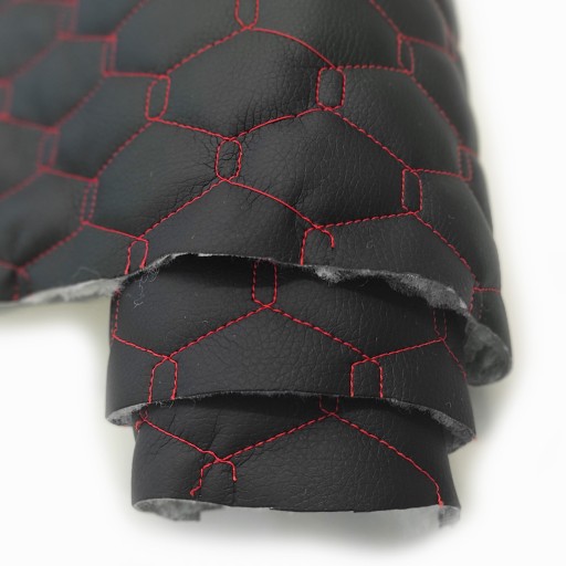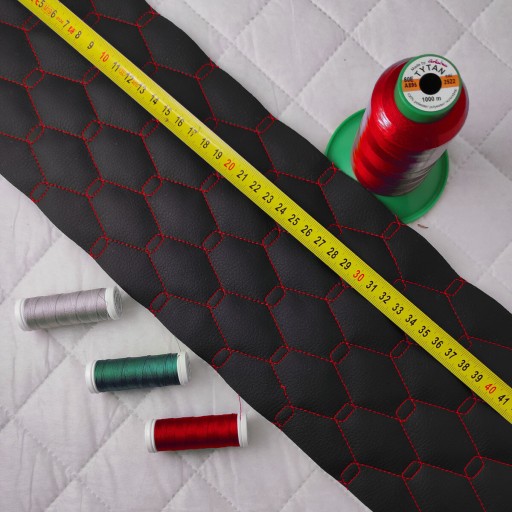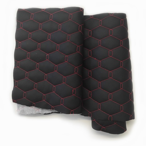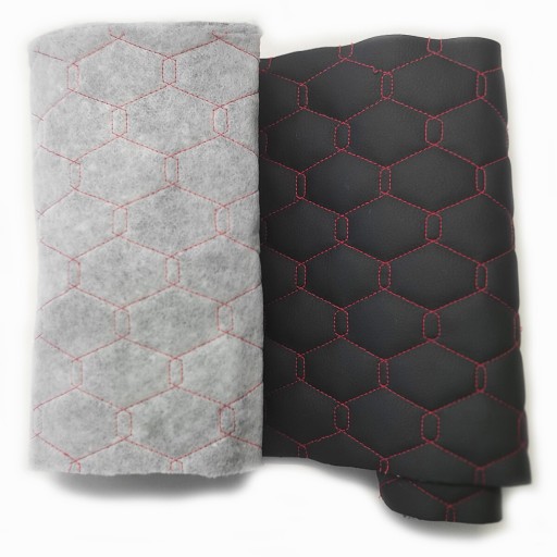 Ekoskóra jest wykonana przy użyciu igieł i mocnych nici. Ta opcja polega na zszyciu tkaniny i użyciu nici do stworzenia wzoru na powierzchni.
