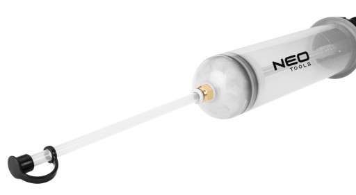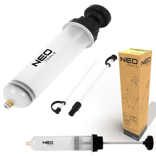 Strzykawka do płynów eksploatacyjnych 500 ml 10-806 marki NEO to praktyczna strzykawka wykonana z materiałów PP oraz PCV, oferowana w zestawie z przedłużkami 20 i 21,5 cm. Strzykawka wyposażona została w podwójne uszczelki oraz półprzezroczysty cylinder do sprawdzania dokładnej objętości płynu i ogólnego stanu substancji. Zastosowane w niej szybkozłącze zapewnia z kolei dobre oraz szczelne połączenie węża. Wyskalowana podziałka ułatwia precyzyjne pomiary, a odpowiednia konstrukcja – łatwość w czyszczeniu i demontaż węża oraz uszczelek. Strzykawka marki NEO jest odporna na wszystkie płyny eksploatacyjne. Dobrze się sprawdzi w usuwaniu takich płynów jak: płyn hamulcowy, płyn chłodniczy, olej przekładniowy czy też olej wspomagania układu kierowniczego. Strzykawka do płynów eksploatacyjnych marki NEO polecana jest zarówno majsterkowiczom jak i zaawansowanym w fachu profesjonalistom.