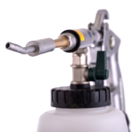 Pistolet idealnie nadaje się do czyszczenia na mokro wszelkiego rodzaju zabrudzeń tapicerek, klimatyzacji, elementów z tworzywa sztucznego, elementów lustrzanych, siedzeń, dywaników, nawiewów powietrza i innych trudnych do usunięcia zabrudzeń. Obudowa pistoletu wykonana jest z aluminium dzięki czemu nie rdzewieje.
