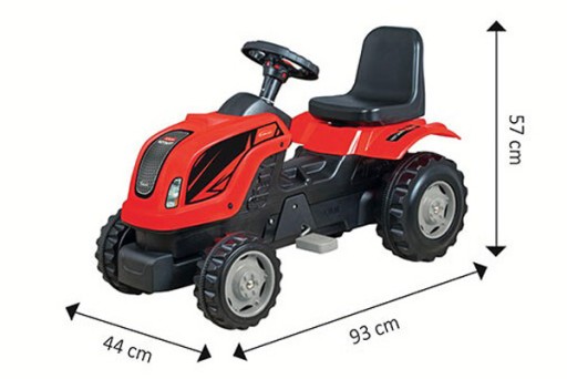 - Wymiary traktorka z przyczepką: 141 x 44 x 57 cm