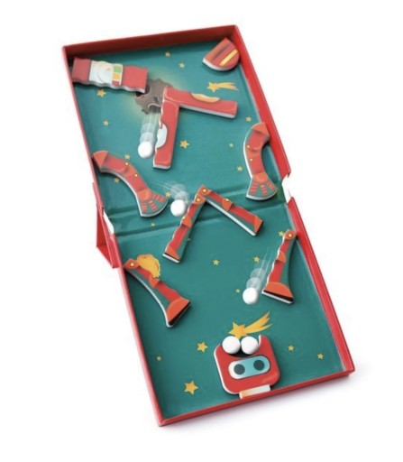 Puzzle magnetyczne i tor kulkowy to nowa propozycja dla fanów magnetycznych przygód. Gra 2w1 ma formę rozkładanego pudełka z podstawką (rozłozone pudełko jest zbliżone ułożeniem to tabletu). Jest to wygodna i świetna zabawa dla każdego malucha. Poręczna forma rozkładanego pudełka doskonale sprawdza się nie tylko w domu, ale również w podróży. Zestaw składa się z 11 grubych magnetycznych elementów. Ułożymy z nich obrazek ROBOTA oraz stworzymy tor kulkowy dla 5 kulek.