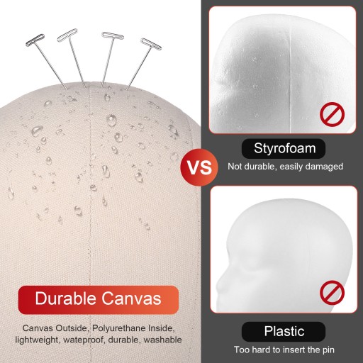 ✅ Głowa peruki premium jest owinięta na zewnątrz trwałym płótnem, łatwa do wkładania i wyciągania szpilek typu T.