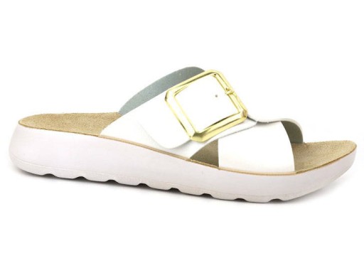 Klapki damskie renomowanej marki Inblu zostały wykonane z wierzchu ze skóry ekologicznej w kolorze białym.