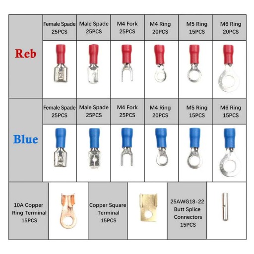 Zestaw konektorów 300 sztuk. Izolowane konektory zaciskane dostarczone w solidnym opakowaniu z elastycznego plastiku. Opakowanie umożliwia kontrolę wzrokową, zapobiega mieszaniu się różnych konektorów.