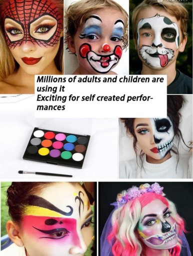 ✅Wielofunkcyjność: Farby nadają się nie tylko do malowania twarzy, ale także do tworzenia tatuaży tymczasowych lub malowania ciała na imprezach kostiumowych.