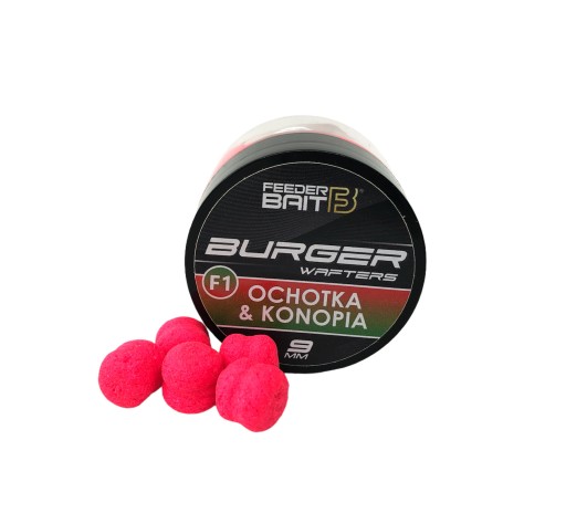 Feeder Bait Burger Wafters 9mm -Jest to przynęta dedykowana do Method Feeder. Kształt przynęty jest charakterystyczny i posiada wgłębienie, dzięki czemu po założeniu przynęty na gumkę, ta utrzymuje się długo na włosie. Feeder Bait BurgerWafters w wodzie idealnie balansuje z haczykiem przy dnie. Przynęty wyprodukowano w intensywnych barwach i w optymalnej wielkości 9mm. Dostępne w wielu atrakcyjnych aromatach.
