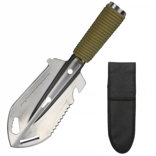 Poręczna, wielofunkcyjna a przez to wygodna w użytkowaniu saperka. Wykonana z jednego kawałka metalu, ze sznurkiem owiniętym wokół rękojeści.