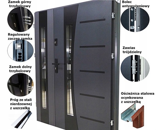 - Zamek górny 3-bolcowy. Stanowi dodatkową ochronę przed próbą włamania.