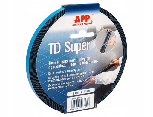 APP TD SUPER ДВУХСТОРОННЯЯ ЛЕНТА Вспененная ДЛЯ ПОЛОСОК И ЭМБЛЕМ 9мм х 10м