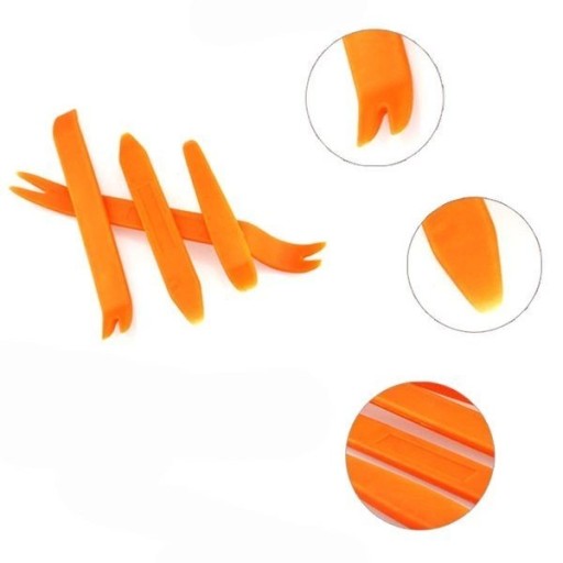 Zestaw 4 szt narzędzi do otwierania i demontażu paneli, listew, elektroniki pozwala na szybkie i łatwe ich zdemontowanie. Posiadają specjalne profile umożliwiające użycie dźwigni przy demontażu.