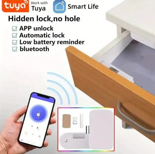 -Inteligentny szufladowy zamek. Brak klucza, Do odblokowania wystarczy telefon z wcześniej sparowaną aplikacją.