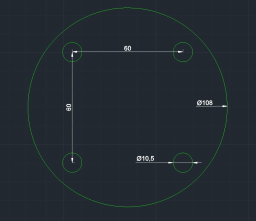 Podstawa o średnicy 108mmx4mm, ucho 40x40x6mm, średnica otworu w uchu 20mm
