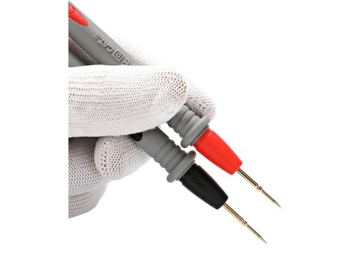 Kable pomiarowe świetnie nadają się do multimetrów z klasycznym wtykiem bananowym. Dzięki w pełni izolowanym rączkom są one całkowicie bezpieczne podczas pracy. Cienkie końcówki pomiarowe typu igła, umożliwiają precyzyjne pomiary nawet drobnych elementów elektronicznych.