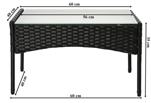 Zestaw mebli wypoczynkowych ogrodowych sofa 2 fotele stolik kawowy czarny