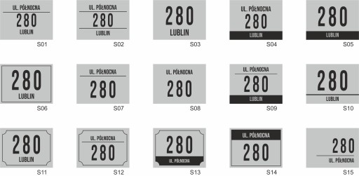 W miejscowościach, które posiadają ulice, place lub osiedla, na tabliczkach umieszcza się zarówno numer porządkowy, jak i nazwę odpowiedniej ulicy, placu lub osiedla. Natomiast w miejscowościach, które nie posiadają ulic, placów ani osiedli, na tabliczkach umieszcza się jedynie numer porządkowy oraz nazwę samej miejscowości.