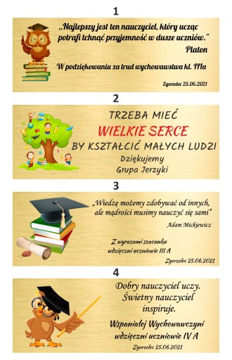 (można skorzystać z naszych propozycji lub podać swój własny tekst i grafikę, jeżeli chcą Państwo użyć swojej grafiki należy ją najpierw do nas wysłać w wiadomości, a my sprawdzimy czy się nadaję do umieszczenia na tabliczce)