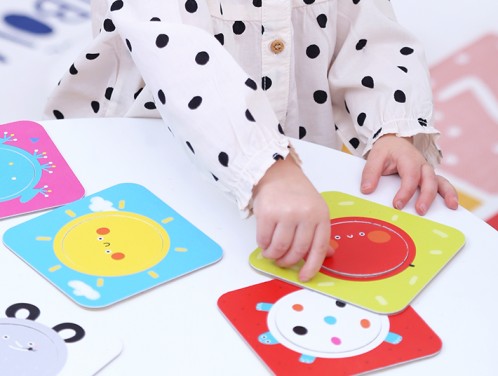 Czas odkryć koło! Edukacyjny zestaw sprawdzi się jako pierwsze puzzle dla maluchów. Składa się 8 dużych dwuelementowych układanek. Zabawa polega na dopasowywaniu wyjmowanych kółeczek. Możecie je dowolnie wymieniać pomiędzy tabliczkami, co sprawia dodatkową radość.