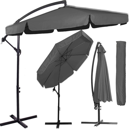 DUŻY PARASOL OGRODOWY SPRINGOS NA WYSIĘGNIKU Z KORBĄ 350cm