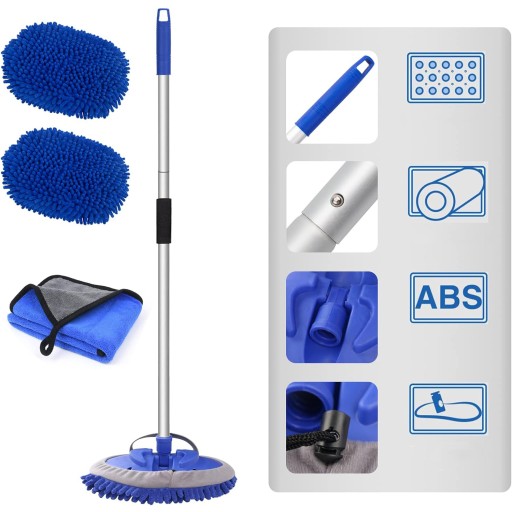 🩵 【Superfine Fibre】Główka szczotki mopa wykonana jest z mikrofibry, włosy są miękkie, nie zrzucają włosów i są trwałe. Łatwo wchłania dużą ilość mydła i wody, bezpiecznie i łatwo czyści powierzchnię pojazdu. Jest również wyposażony w super chłonny ręcznik 30*60 CM, który może być używany zarówno do celów suchych, jak i mokrych, idealny do czyszczenia samochodu.