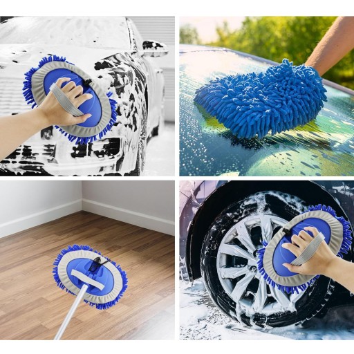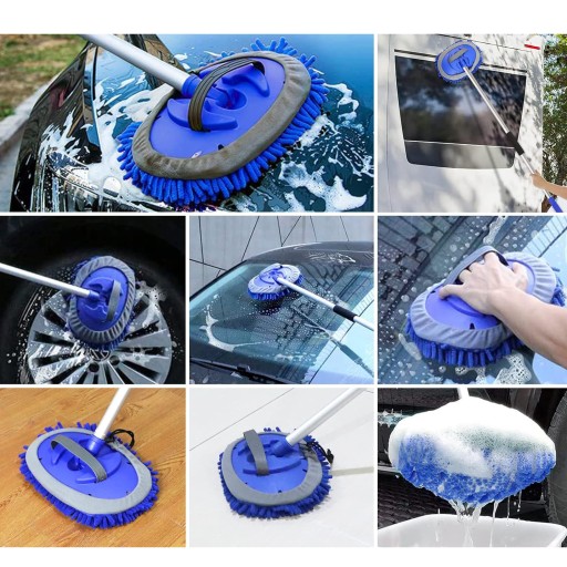 🩵 【Szczotka do Mycia Samochodu 2 w 1】 Z tyłu szczotki do czyszczenia mopa znajduje się pasek. Ściereczka do mopa może być używana jako sama rękawica do czyszczenia dolnej powierzchni, co jest szybsze i bardziej pracochłonne. Możesz również zainstalować uchwyt do czyszczenia wysokiego samolotu, kompleksowo i wydajnie. To profesjonalna miotła do mycia samochodów o podwójnej funkcji.