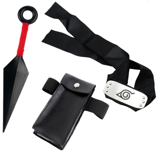 - W skład zestawu wchodzi opaska, 1x kunai oraz mała saszetka z ekoskóry,