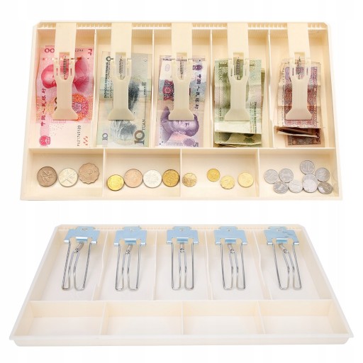 Taca z materiału ABS z metalowym klipsem Szuflada na gotówkę Włóż tacę na banknoty Pudełko do przechowywania walut (białe)