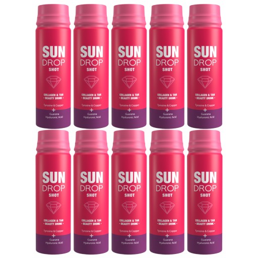 Sun Drop Beauty Drink to orzeźwiający shot wspomagający opalanie, regenerujący skórę, korzystnie wpływający na jej elastyczność i nawilżenie.