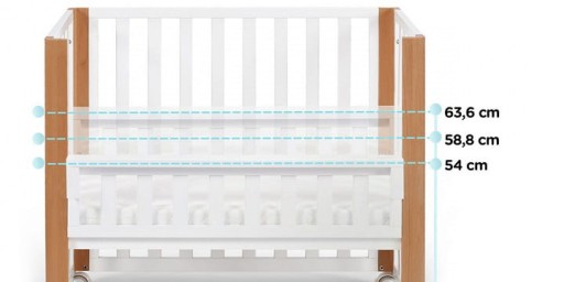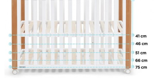 Dno w łóżeczku dostawnym można regulować na 3 wysokościach. Dzięki temu bez problemu dopasujesz KOYA do wysokości swojego łóżka.