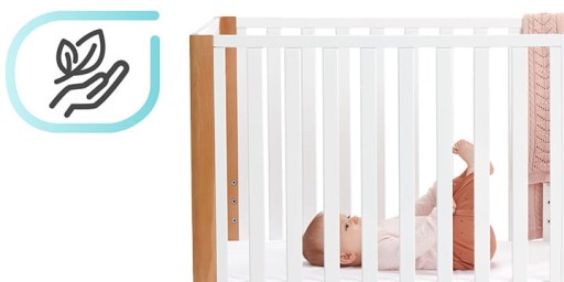 Łóżeczko dziecięce KOYA pomalowano bezpiecznymi dla dzieci farbami. Są przetestowane i nietoksyczne dla maluchów.