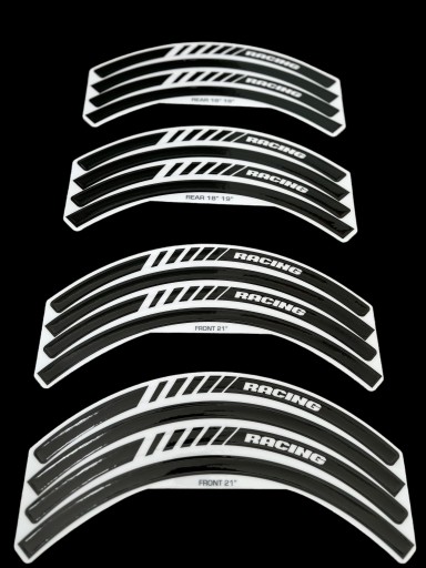 Oferta dotyczy kompletu naklejek zabezpieczających i ozdobnych na felgi do motocykli enduro 21' i 18’ lub 19’ ( bardzo wytrzymały matriał)
