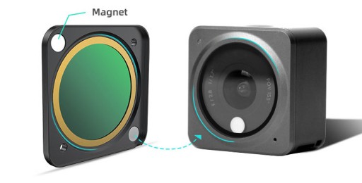 Konstrukcja magnetyczna pozwala na wymianę filtra w kilka sekund poprzez nałożenie na obiektyw.