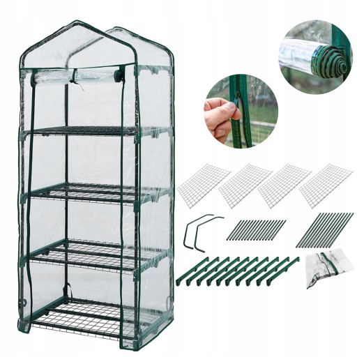 To składana konstrukcja wykonana z trwałych, metalowych rurek o grubych ściankach, ściśle dopasowanych łączników, zapewniająca stabilność i wytrzymałość nawet w ekstremalnych warunkach pogodowych. Szklarnia posiada pokrycie z przezroczystej folii PVC, która gwarantuje doskonałe warunki do hodowli roślin.