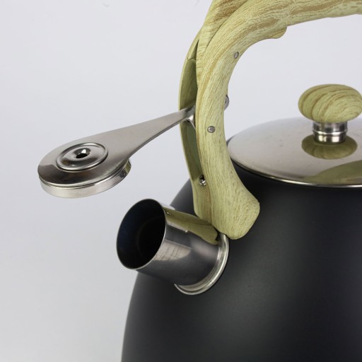 Rączka czajnika wykonana została z tworzywa sztucznego pokrytego silikonową powłoką Soft Touch o imitującej drewno teksturze. Nie nagrzewa się, jest odporna na wysokie temperatury, dzięki czemu bez obaw można przenosić czajnik z dopiero co zagotowaną wodą, nie parząc sobie rąk a odpowiednie wyprofilowanie sprawia, że dobrze leży w dłoni. Nalewanie wody do środka czajnika ułatwia zdejmowana, wciskana na rant pokrywka z poręcznym uchwytem. Głośny gwizdek, podnoszony za pomocą przycisku nie pozwoli zapomnieć o gotującej się wodzie. Jest on na stałe połączony z korpusem czajnika. Duża pojemność czajnika wynosząca 2,7l świetnie sprawdzi się w codzienności dużych rodzin. Pozwoli zagotować wodę do przyrządzenia gorącego napoju dla 6-7 osób.