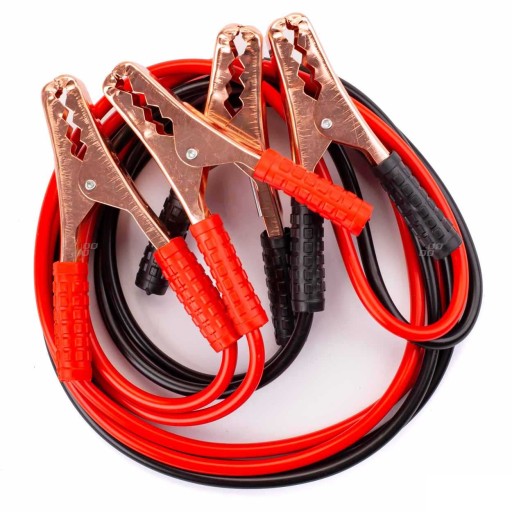 - Zestaw zawiera dwa przewody o długości 4 metrów każdy, w dwóch kolorach (czarny i czerwony) zakończone solidnymi klamrami o szerokim rozwarciu