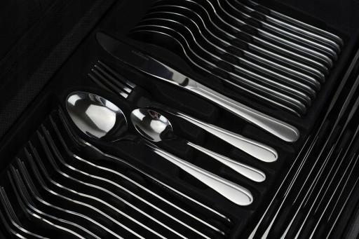Ten 12 osobowy zestaw sztućców charakteryzuje się zaokrąglonym zakończeniem i fantazyjnie przebiegającym wzdłuż rączki grawerem, który sprawia, że wyglądają bardzo elegancko. Znajdziemy w nim wszystko, co potrzeba by każdy posiłek był wyjątkowy. Sprawdzą się do użytku zarówno w domowym zaciszu jak i podczas imprez w gronie rodziny i przyjaciół. Można bez obaw myć je w zmywarce.