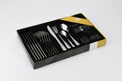 Elegancki, 24-elementowy zestaw sztućców w pudełku z linii Nina. Niezastąpione w każdym domu, idealne do użytku domowego jak i imprezy w gronie rodziny i przyjaciół.