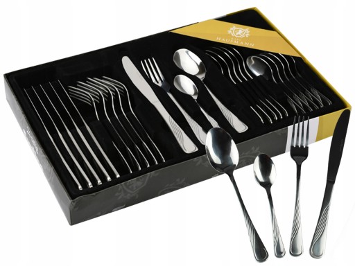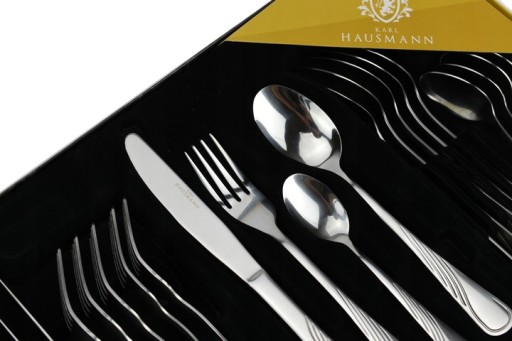 Ten 6 osobowy zestaw sztućców charakteryzuje się zaokrąglonym zakończeniem i fantazyjnie przebiegającym wzdłuż rączki grawerem w postaci 2 paseczków, który sprawia, że wyglądają bardzo elegancko. Sprawdzą się do użytku zarówno w domowym zaciszu jak i podczas imprez w gronie rodziny i przyjaciół. Można bez obaw myć je w zmywarce. Zapakowane zostały w eleganckie pudełko, które ułatwi ich przechowywanie i transport.