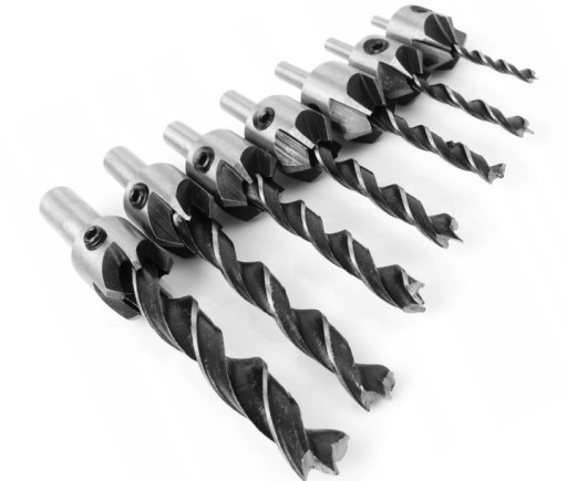 WIERTŁA DO DREWNA Z POGŁĘBIACZEM ZESTAW WIERTŁO + POGŁĘBIACZ 7 KOMPLETÓW