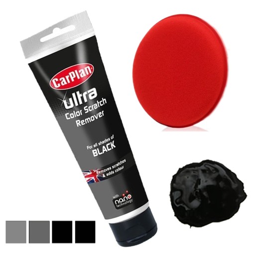 ULTRA PASTE удаляет царапины с помощью ЧЕРНОГО ПИГМЕНТА ДЛЯ ПОЛИРОВКИ + губчатого аппликатора.