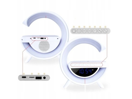 ✅ Funkcje: Lampka, zegarek, budzik, ładowarka QI, głośnik, radio FM