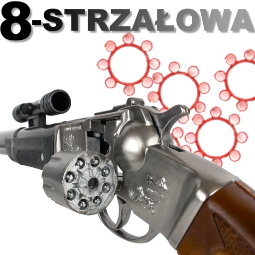 ⭐ METALOWA STRZELBA KOWBOJSKA NA KAPISZONY 8-STRZAŁOWA marki GONHER