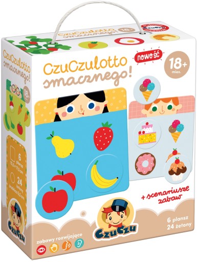 Pełne kolorów i humoru ilustracje przedstawiają różnorodne potrawy i smakołyki. Zanim maluch opanuje reguły gry, możecie bawić się na różnorodne sposoby dostosowane do umiejętności dziecka. Co więcej, w zestawie znajdziecie poradnik pełen pomysłów na edukacyjne zabawy. Skorzystajcie z naszych podpowiedzi, by w pełen frajdy sposób uczyć się i rozwijać zmysły: wzrok, dotyk, słuch oraz węch i smak. CzuCzulotto doskonały pomysł na grę dla całej rodziny.