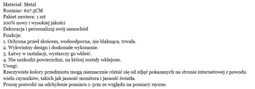 Wysoka jakość wykonania emblematu nadaje niepowtarzalny charakter i elegancką stylizację pojazdu.