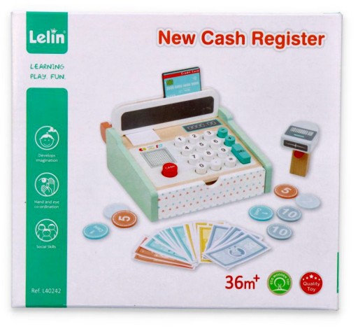 LELIN DREWNIANA KASA FISKALNA SKLEPOWA ZABAWA