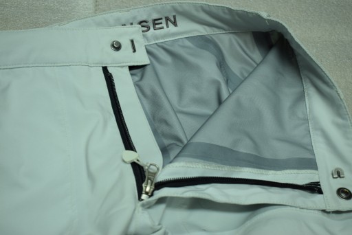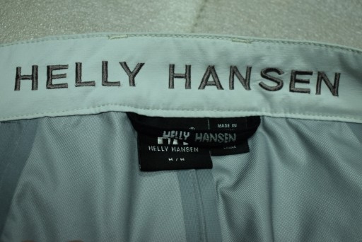 Lekkie spodnie membranowe firmy HELLY HANSEN. Stan bardzo dobry minus, przebarwienie na tyle, jak na zdjęciach (delikatne ślady użytkowania). Dobrej jakości techniczny materiał (wydajna membrana HELLY TECH XP).