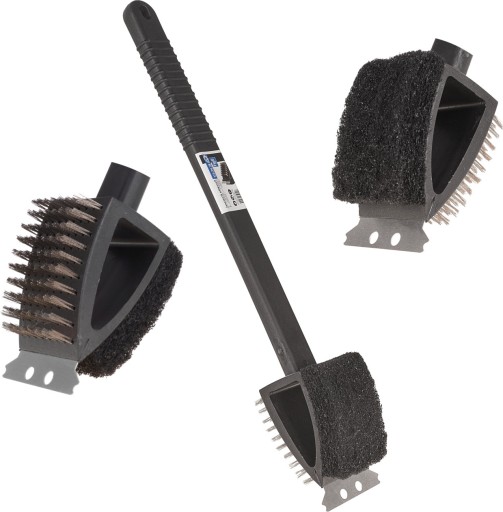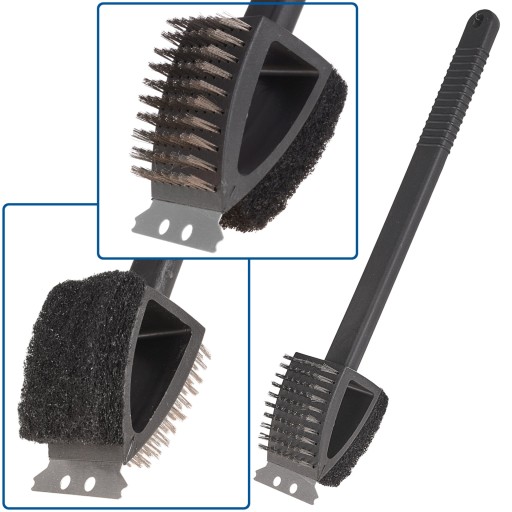 Szczotka ze skrobakiem i gąbką 3w1, do czyszczenia grilla