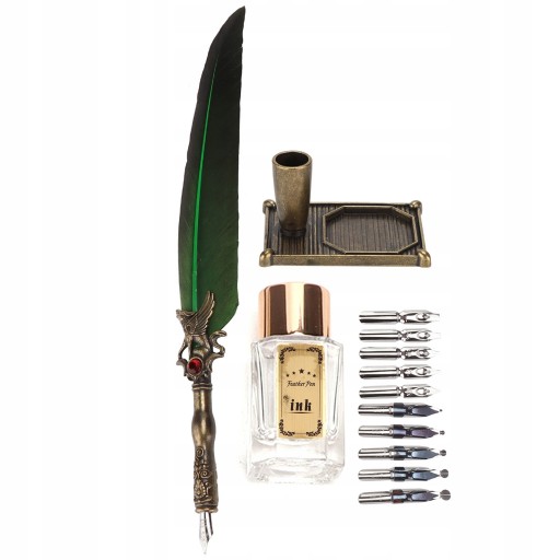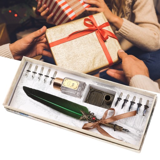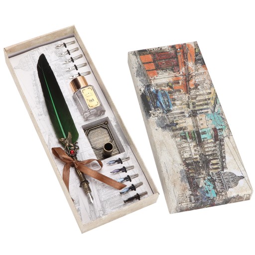 . PIÓRO DO PISANIA KALIGRAFII CIEMNOZIELONY W STYLU VINTAGE ZESTAW PREZENTOWY