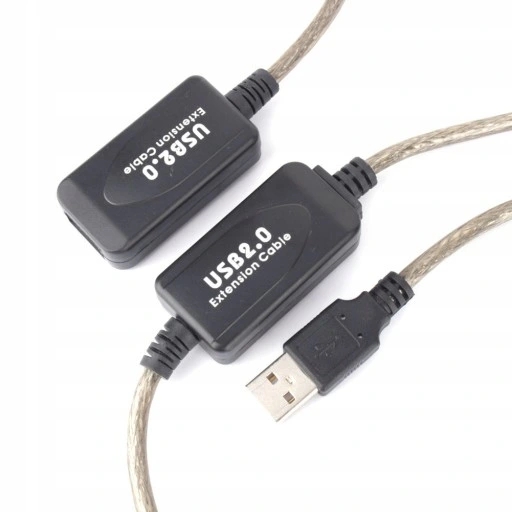 Przedłużacz USB 2.0 o długości 20 m, wykonany z najlepszych materiałów, całość jest ekranowana.