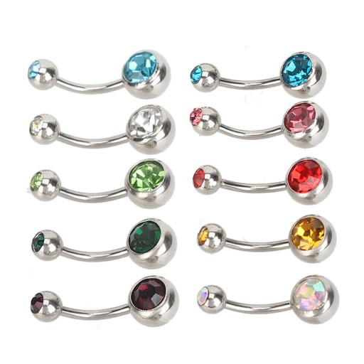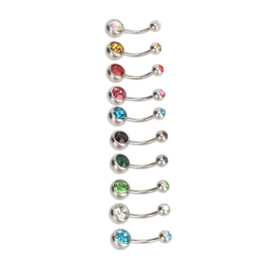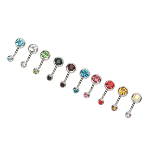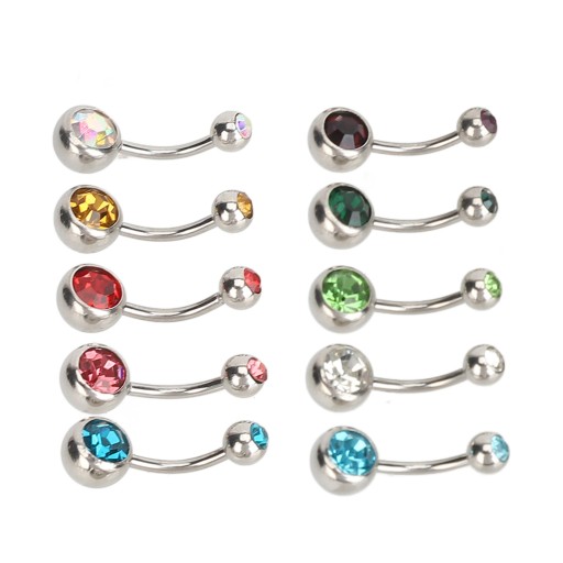 10 шт. Кольца для пупка с разноцветными стразами, изогнутая штанга 72