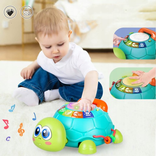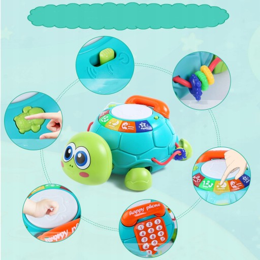 - 🎵Die Handtrommel auf der Schildkröte, solange die Batterie installiert ist (die Batterie ist nicht im Lieferumfang enthalten) und die Trommel gedrückt wird, ertönt die Trommel und das Licht erscheint, wodurch die Aufmerksamkeit des Babys auf sich gezogen wird